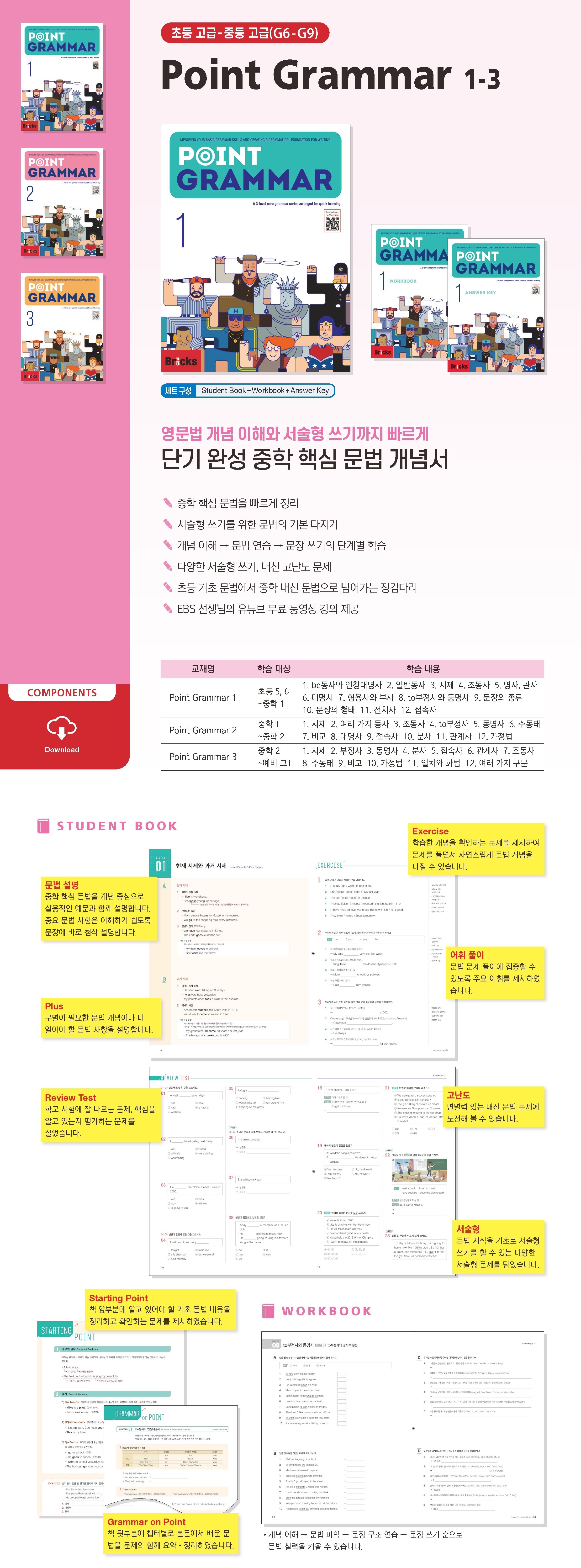 중학교 과정의 기본 꼭 알아야 할 중등 핵심 영문법 개념과 유형을 완벽하게 정리해요! 초등고학년부터 ~ 중1 예정자 필수 영문법 코스!! 기본개념부터 탄탄히 ! 기출문제 적용훈련까지!