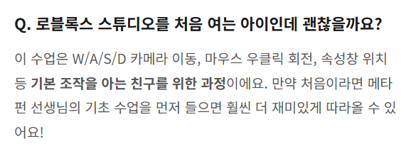 ✔️ 로블록스 스튜디오 기본조작(W/A/S/D, 마우스 우클릭)은 할 줄 알아요