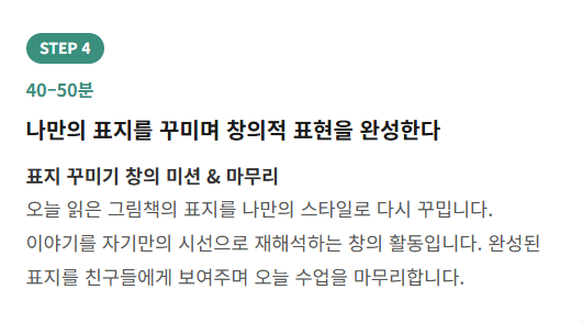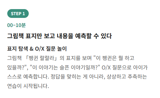 “질문 → 대화 → 생각 정리 → 표현”의 과정을 훈련합니다.
