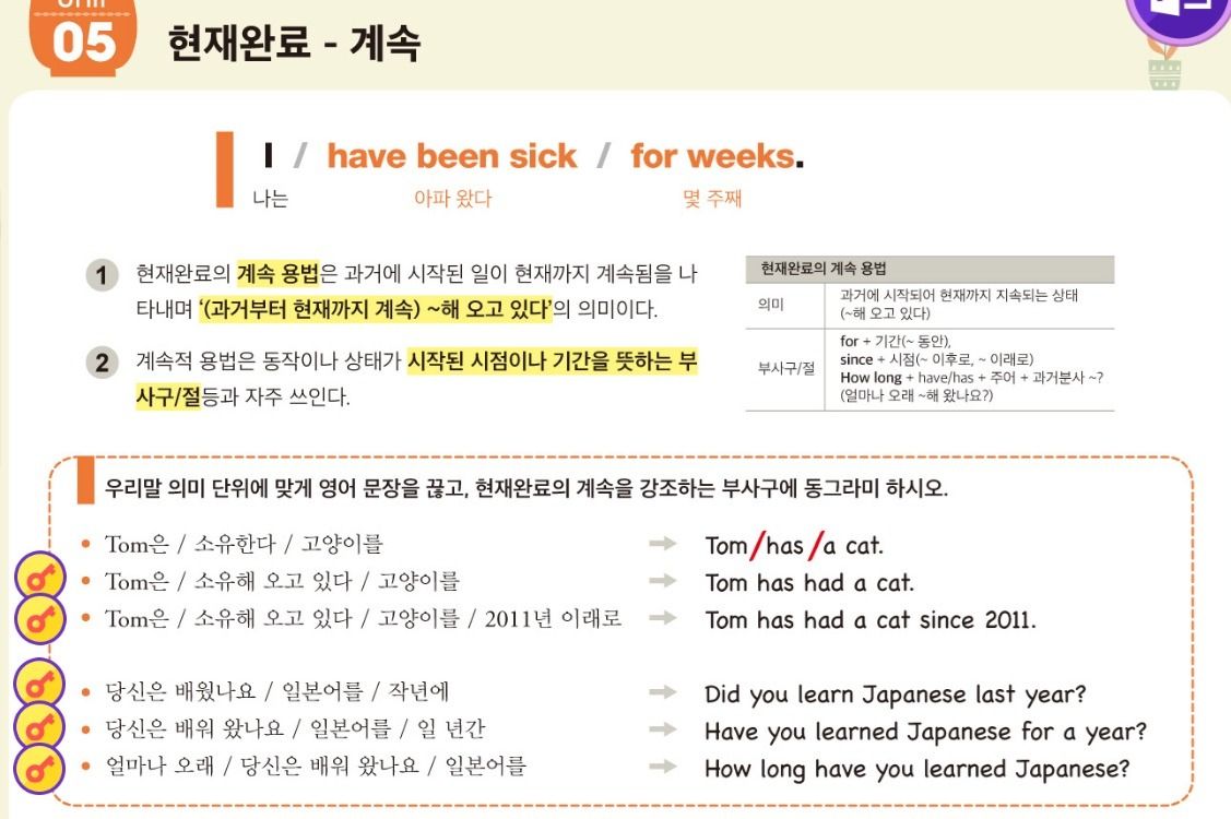 - unit 4. 현재완료 (긍정,부정,의문문) - unit 5. 환재완료 (계속) - unit 6. 현재완료 (경험)