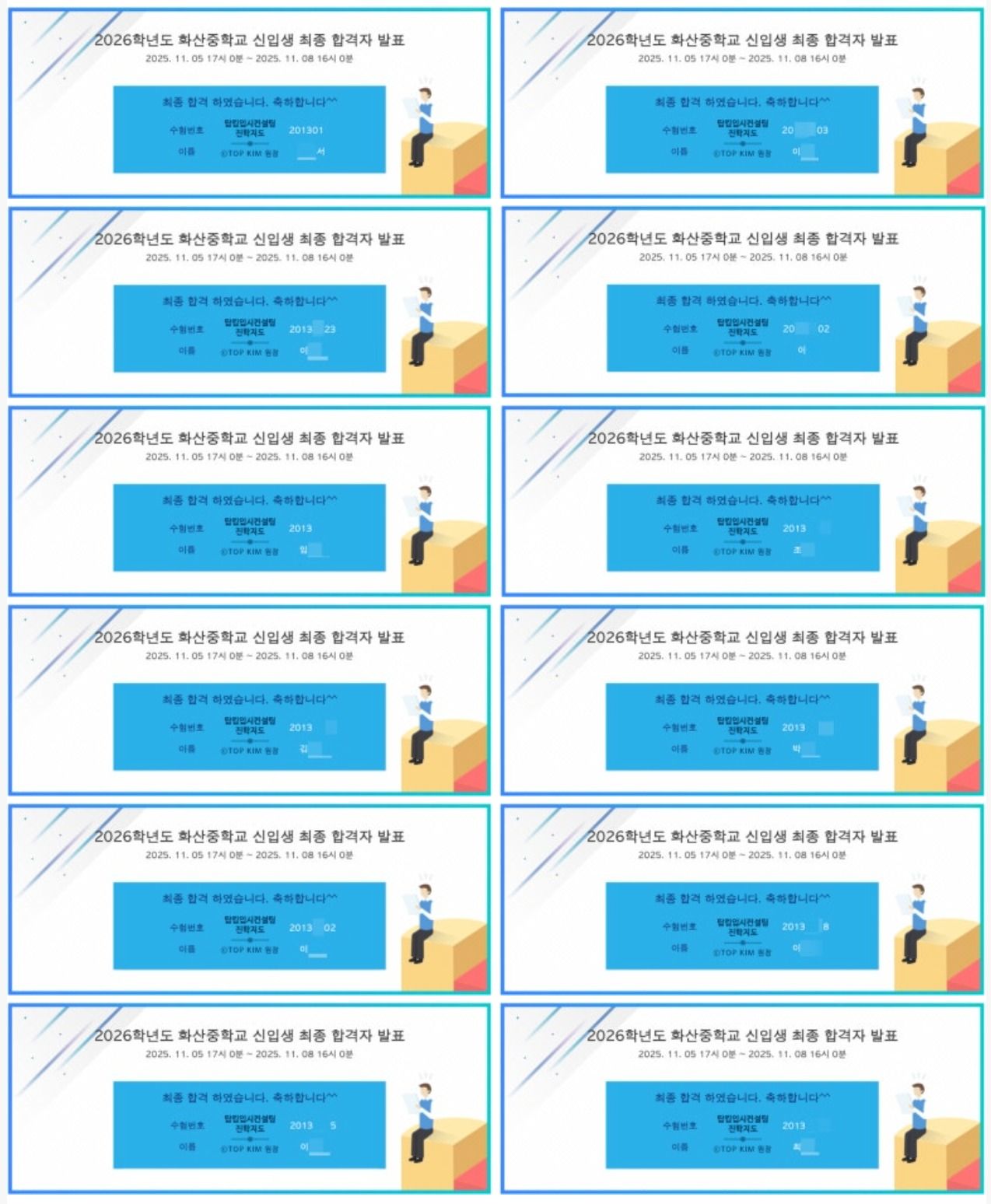 2026학년도 청심국제중 23명, 화산중 12명 합격
