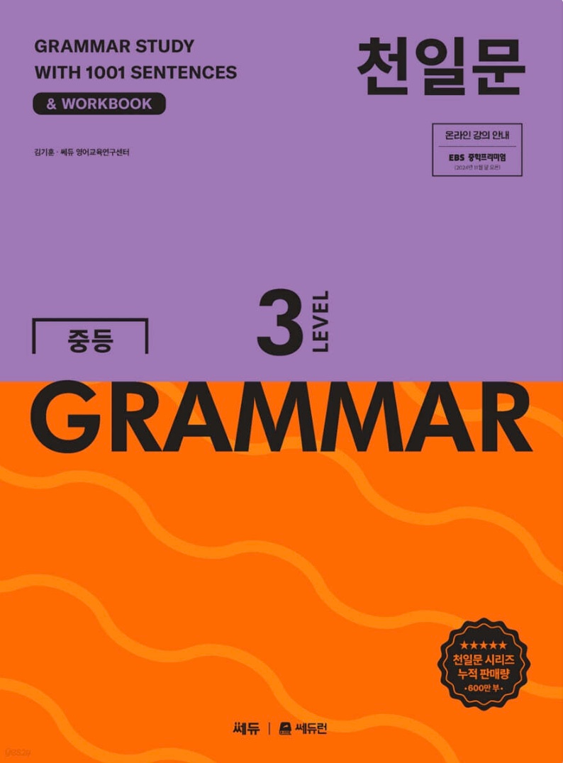 문장으로 익히는 중등 문법 완전 정복! 천일문 중등그래머 레벨3로 문법 개념부터 시험 적용까지, 내신과 서술형까지 모두 대비해요!