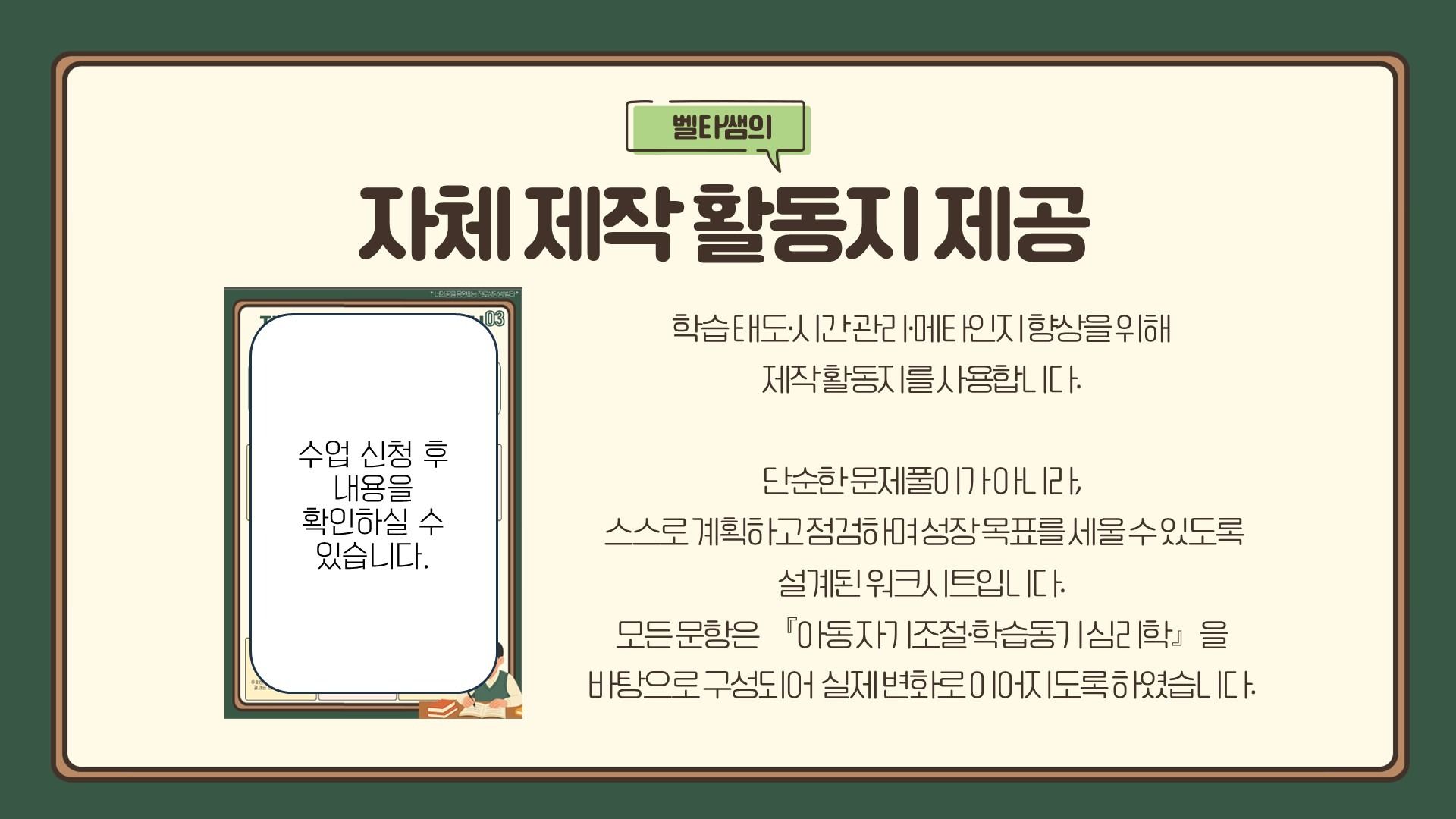본 프로그램에서는 학습 태도·시간 관리·메타인지 향상을 위해 제작 활동지를 사용합니다.