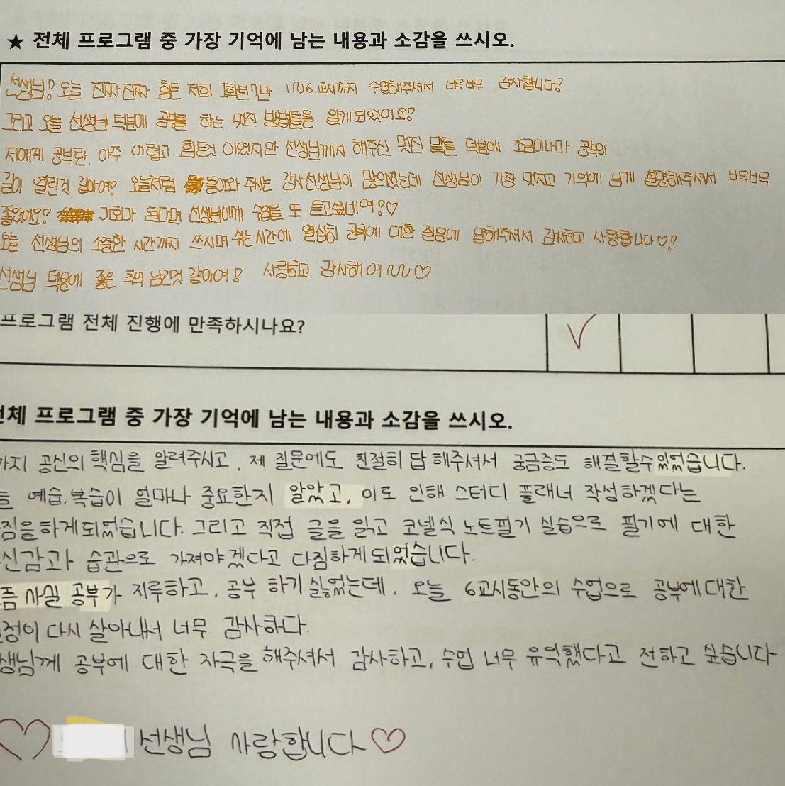 모두 수업을 통해 ‘공부의 필요성과 방향성’을 새롭게 깨달았습니다.