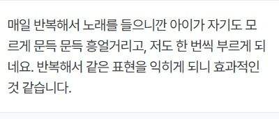 집에서도 반복 가능! → 노래는 언제든 다시 부를 수 있어, 가정에서도 학습이 이어집니다.