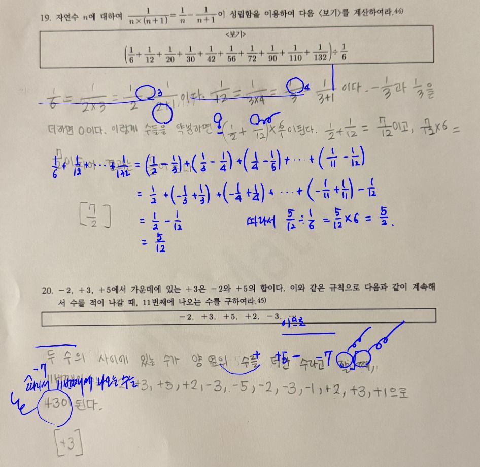 또, 초등 수학 교과서와 수업 시간에는 수학 개념을 명확히 알려주지 않습니다. 중등 수학에서야 비로소 글로 알려줍니다. 그래서 중1은 개념과 문제 풀이 과정을 말하고 쓰는데 약합니다. 이것은 처음에 말한 "답은 찾았는데 어떻게 풀었는지 설명할 수 없는 상태"와 같습니다.