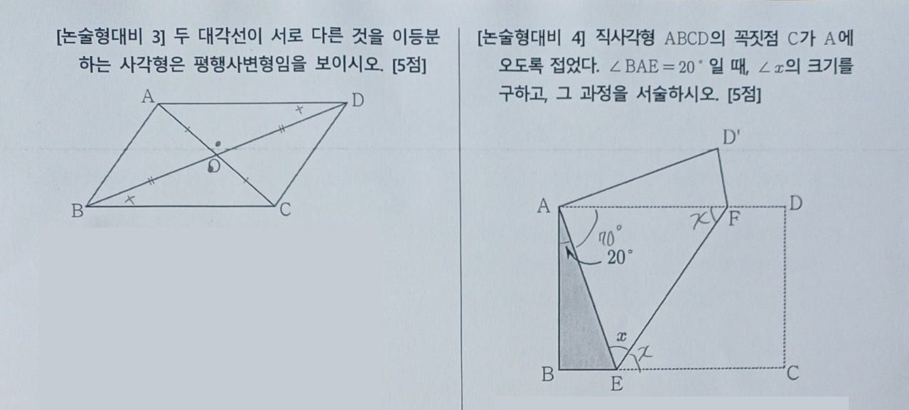 수행평가는 아래 문제와 같이 교과서 있는 기본 개념을 증명하거나 비교적 어려운 문제의 풀이과정을 적습니다.