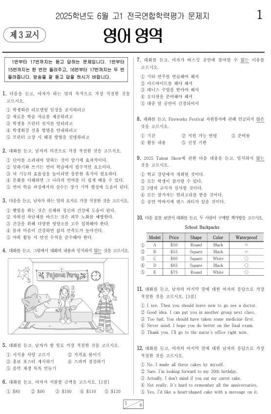 • 고1~고3 사이 영어 독해 실력이 필요한 학생