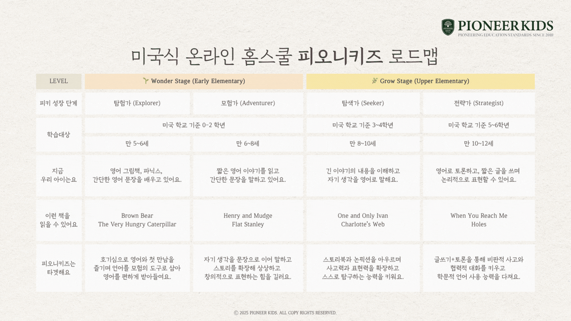 👉 Pioneer Kids 영어 사고력 성장 로드맵: