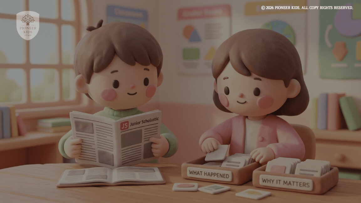 세상을 읽는 아이는 수업 시간에도, 글쓰기에서도 전혀 다른 결과를 만듭니다! ✍️ 미국 초등 6–8학년이 실제 교실에서 읽는 Scholastic Junior Magazine 기사를 기반으로, 읽기·토론·라이팅을 통합한 피오니키즈의 미국식 시사 영어 심화 프로그램입니다. 매 회차 다른 글로벌 이슈를 100% 영어 하브루타 토론으로 탐구하며, 영어 시사 상식, 고급 독해력, 아카데믹 토론 능력, 구조적 라이팅까지 한 번에 성장하며 사고력까지 자연스럽게 확장됩니다. 🇺🇸