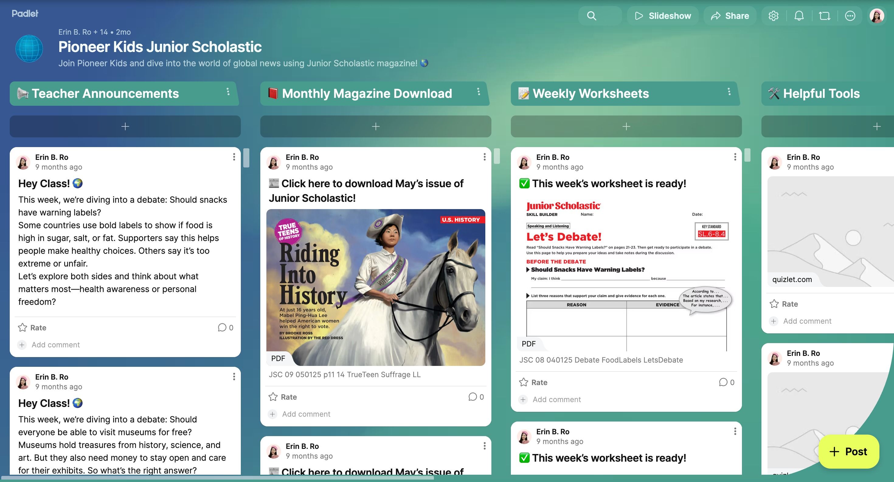 + 1. 유료 미국 월간 시사지 Scholastic Junior Magazine ($8.99 per student)을 무료로 제공해요.