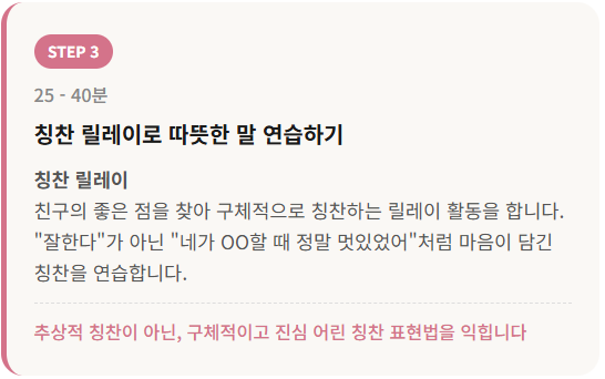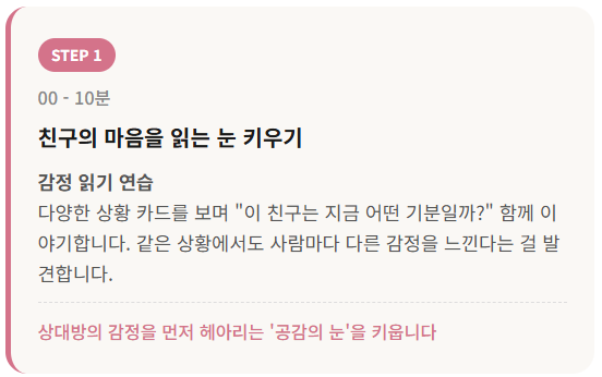 친구에게 먼저 다가가고, 공감하고, 관계를 이어가는 실전 말하기에 집중합니다.