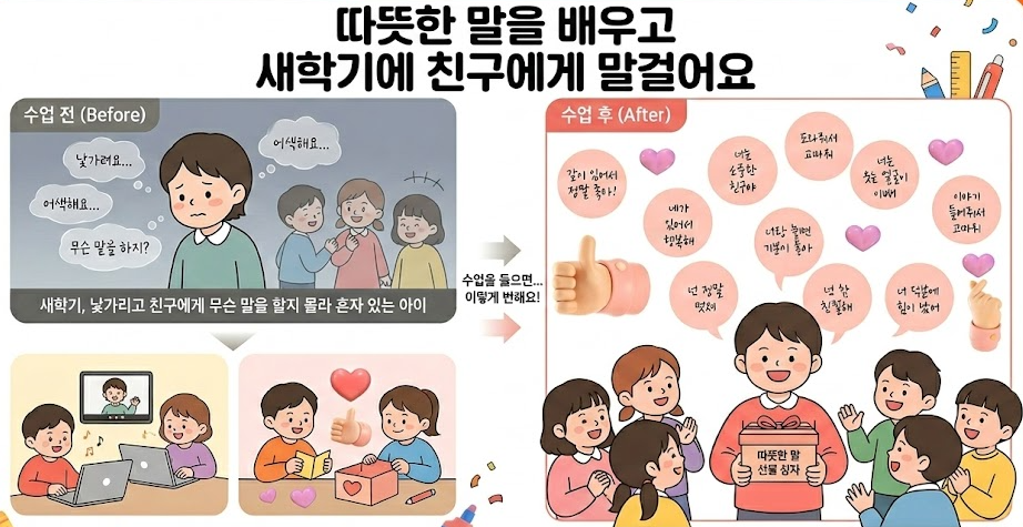 새학기 첫날 친구에게 건낼 말을 더이상 고민하지 않아요