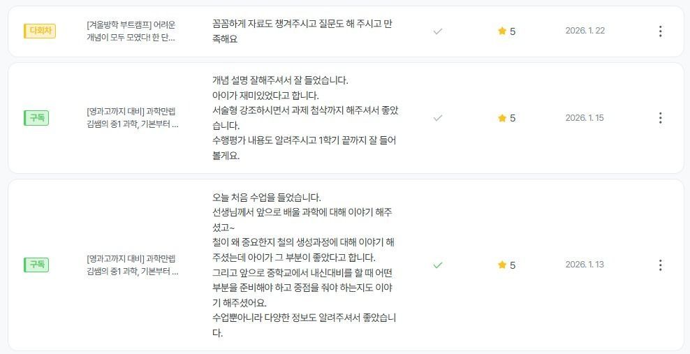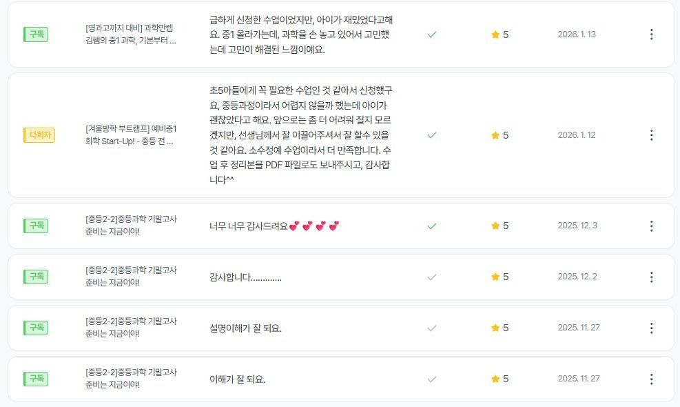 💫 과학만렙 김쌤이 제공하는 학습관리