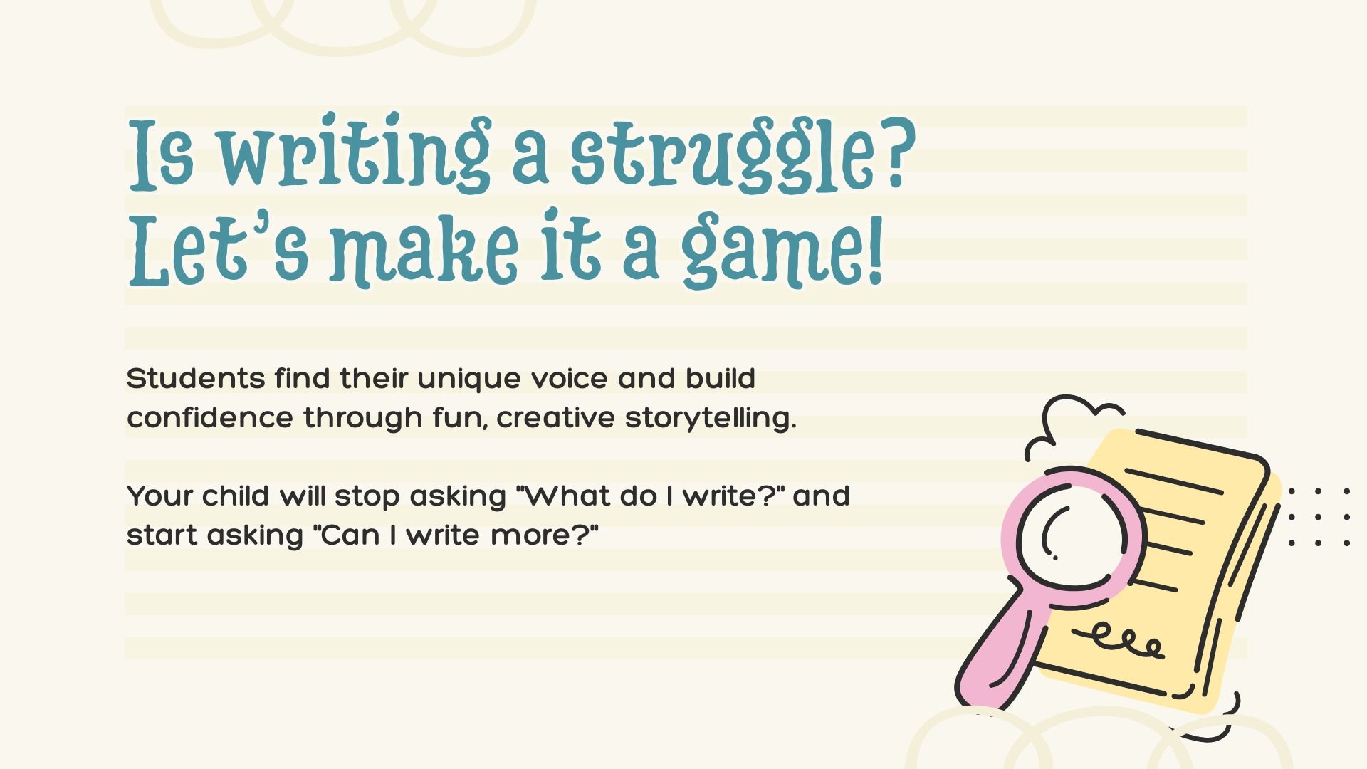 Writing shouldn’t feel like a chore. We use fun and creative scenarios to help students build confidence and find their unique flow. In this workshop, your child will learn that great writing starts with a bold idea and a clear, sharp voice.