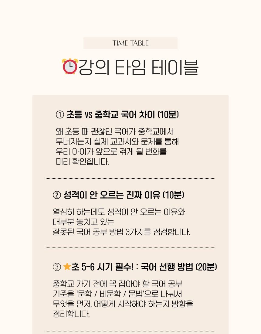 “우리 아이, 이대로 중학교 가도 괜찮을까요…?” 이 상태로 중학교 올라가면 100% 무너집니다. 중학교 국어는 초등 때와 많이 달라집니다. 이 강의에서는 초등 시기에 꼭 준비해야 할 국어 공부를 문학·비문학·문법으로 나눠서 정리해드립니다.