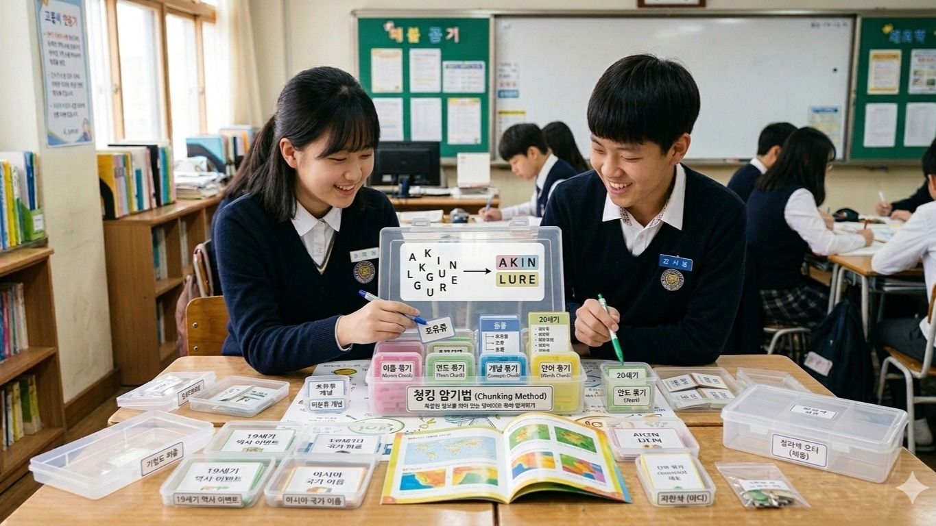 처음엔 두뇌가 어떻게 정보를 기억하는지, 그림과 실험으로 이해해요. 그리고 실생활 예시(단어, 역사 연도, 과학 공식 등)를 가지고 직접 팀을 짜보는 연습을 해요. 각자 ‘내 방식의 청킹/팀 만들기 노트’를 만들어, 집에서 스스로 훈련하는 방법까지 자연스럽게 익힐 수 있도록 도와드릴 거예요.