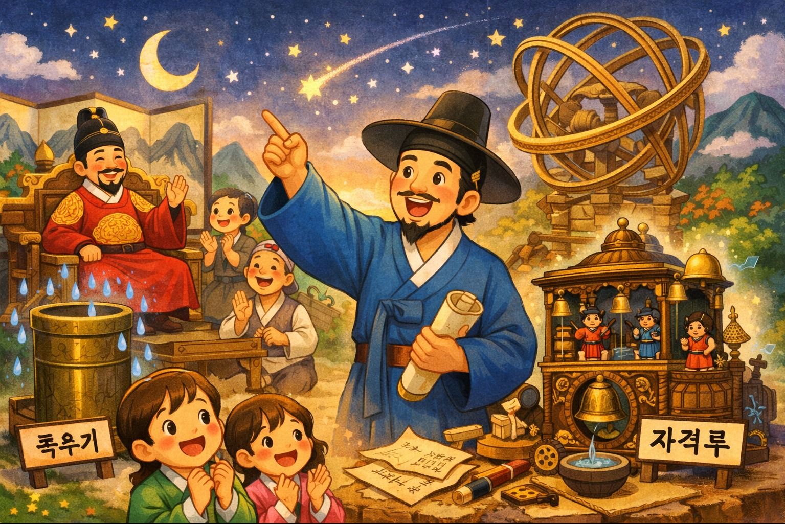 장영실의 이야기와 주요 업적을 구연 동화로 쉽게 설명해요