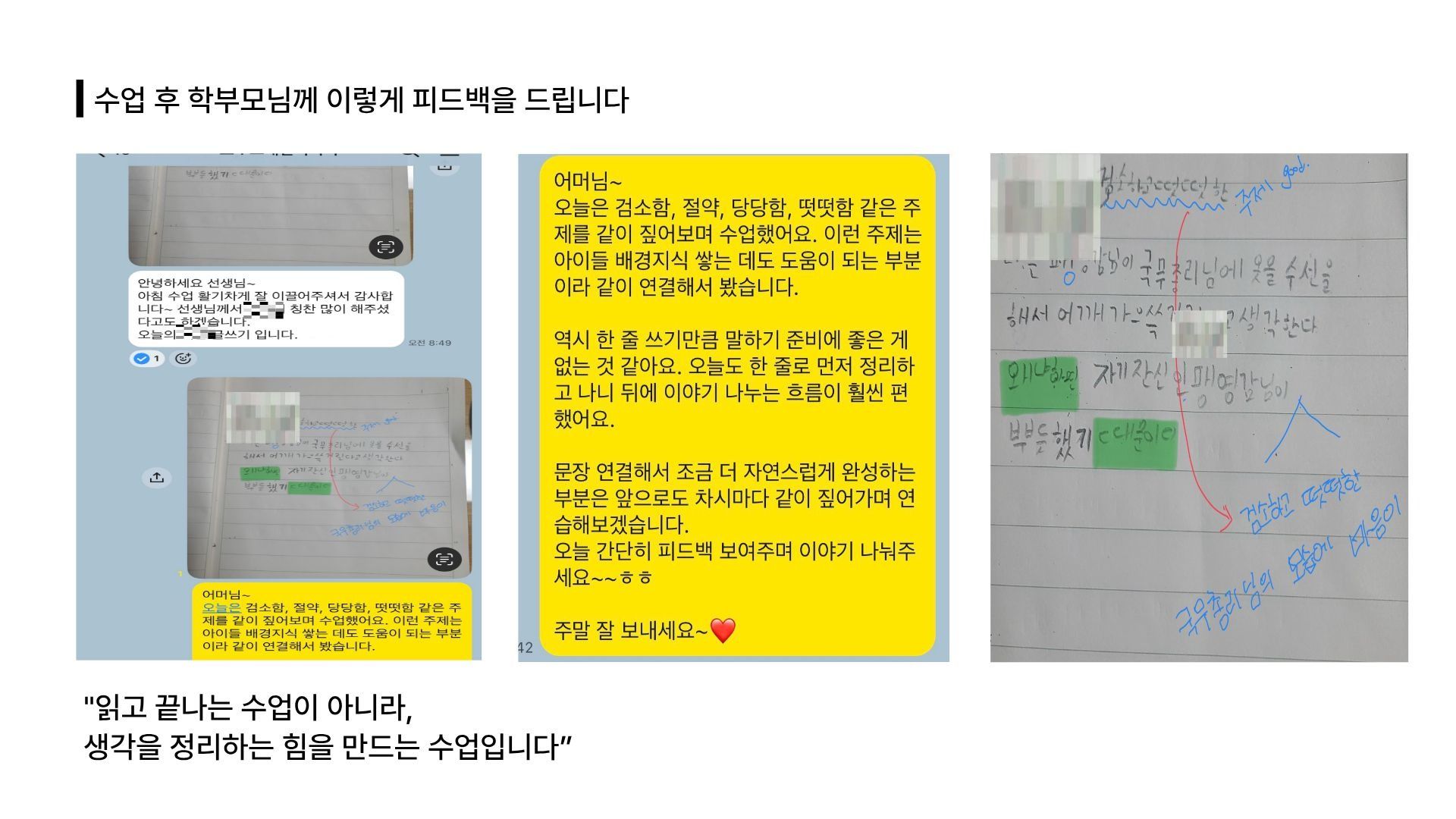 수업 후에도 끝나지 않고 ,아이의 생각을 직접 확인하며