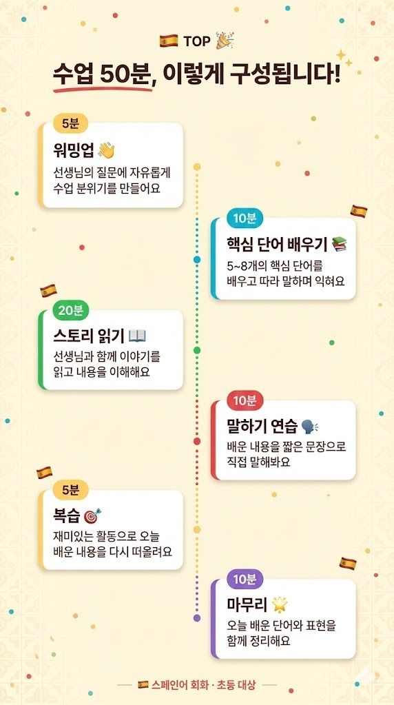 원어민과 함께 짧은 표현을 따라 말하며 자연스럽게 입을 트는 키즈 스페인어 회화!