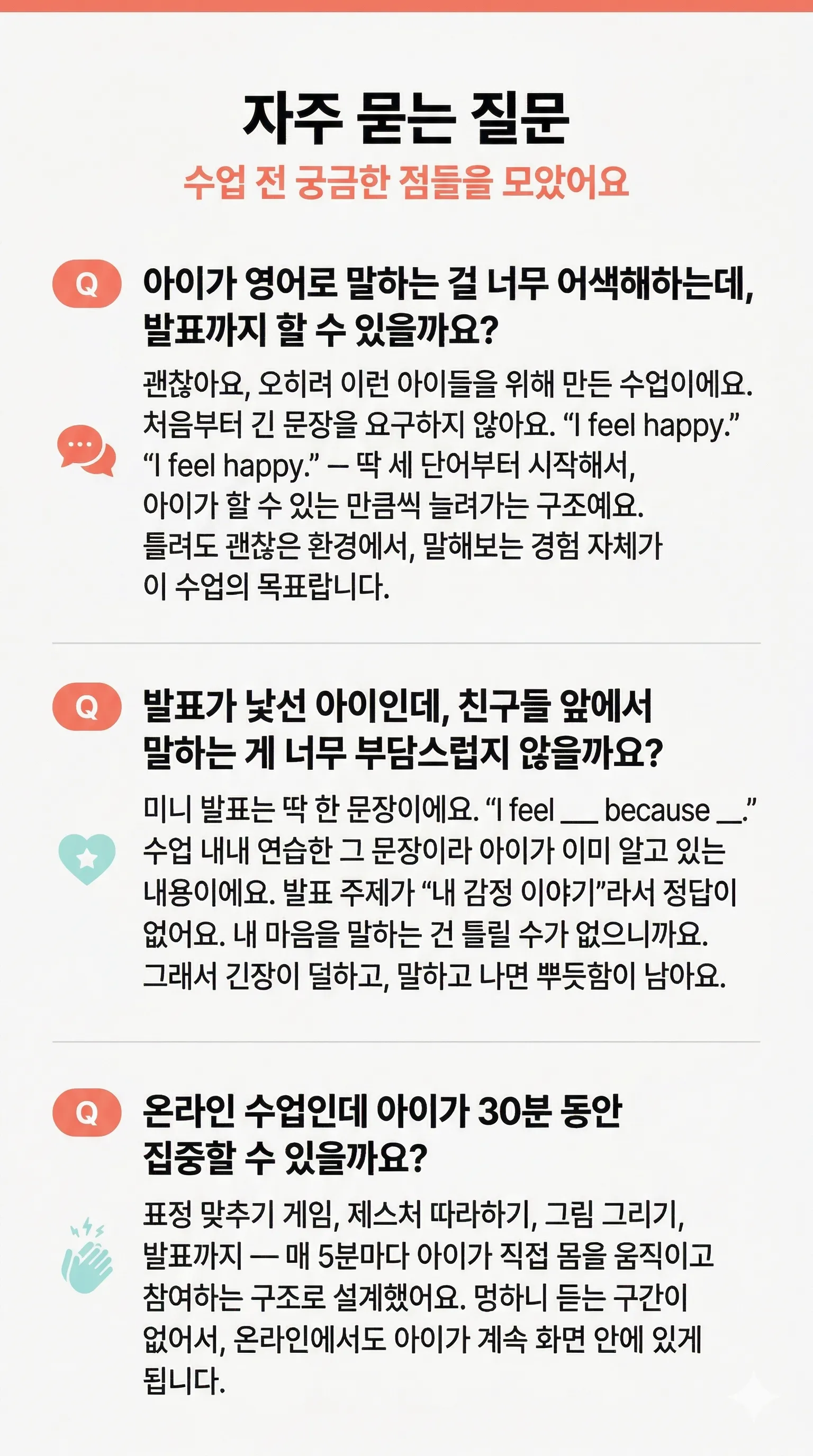 영어로 내 감정을 말하고 발표하는 아이가 됩니다.