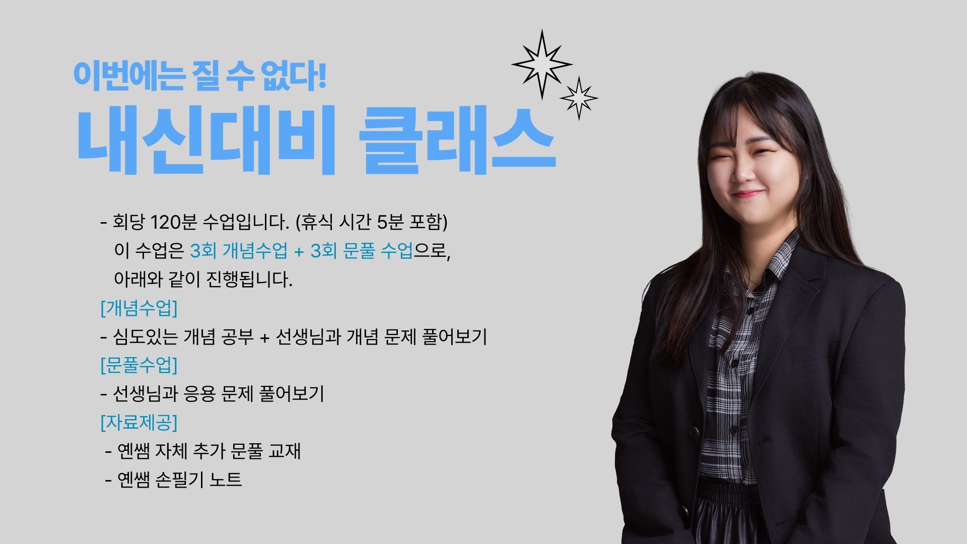 내신 대비에 필요한 필수 대표 유형 및 고난도 문제를 섭렵할 수 있는 수업입니다😀