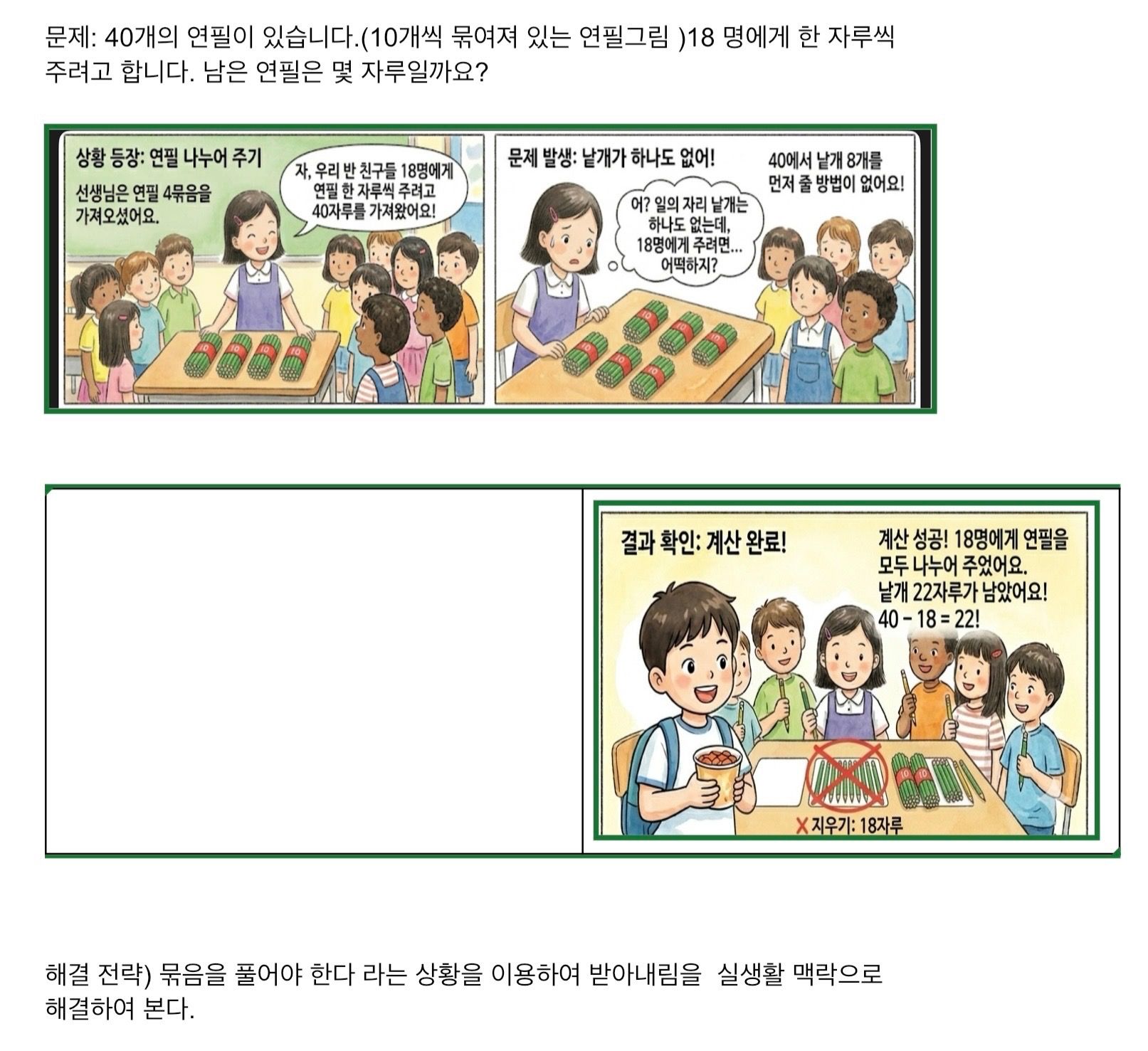 문제를 ‘그림 4컷’으로 직접 시각화하며 창의적으로 사고해요