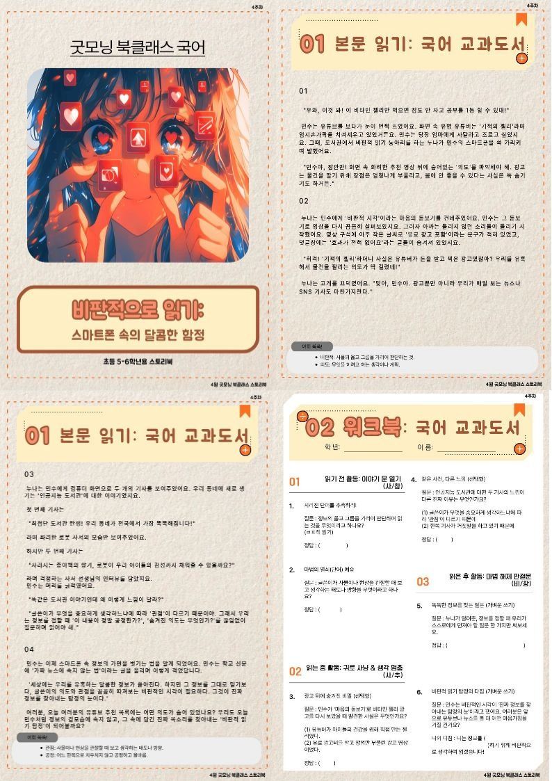"우리 아이 아침 공부 습관, 전문가의 목소리로 시작하세요!" 딱딱한 초등 교과 지문을 생생한 구연동화로 변신시켜 아이들의 몰입도를 극대화합니다. 단순히 듣는 것에 그치지 않고, 스스로 사고를 완성하는 '사·추·비·창' 5단계 워크북으로 문해력의 기초를 탄탄히 다집니다. 주 5일 매일 아침 20분, 아이가 먼저 기다리는 즐거운 독서 루틴을 만들어줍니다.