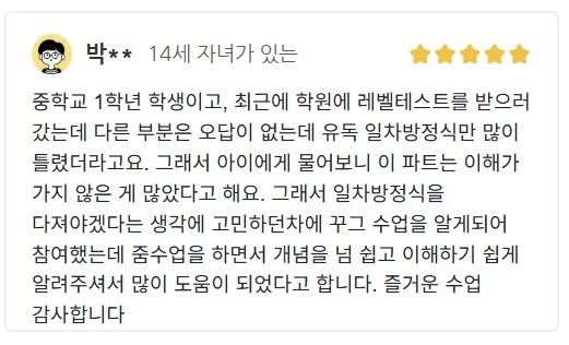 특히 수포자 친구들에게 '내가 수학을 이해하고 풀 수 있구나'하는 자신감과 흥미를 고취시켜준 케이스가 다수