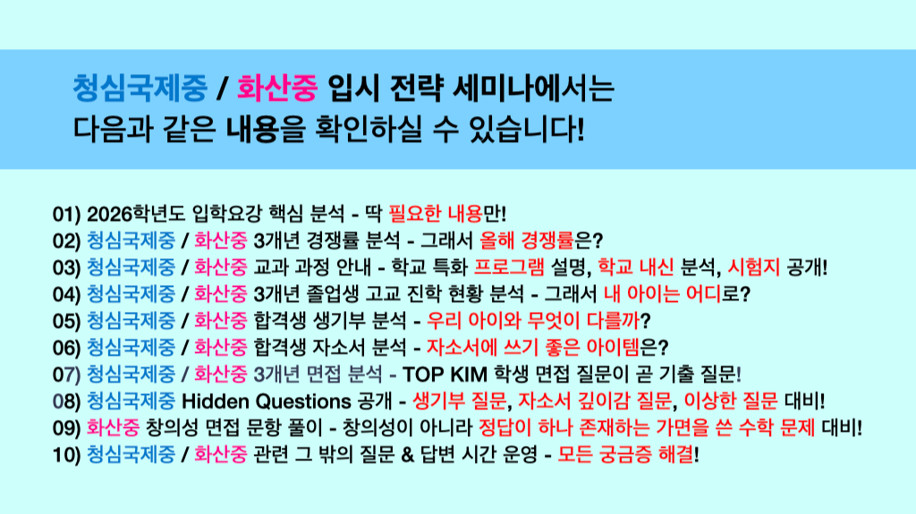 ★ 2026학년도 청심국제중 입시전략 세미나 ★
