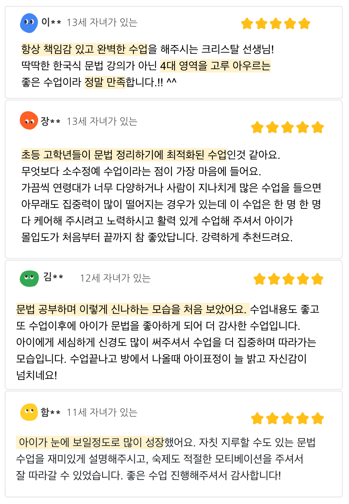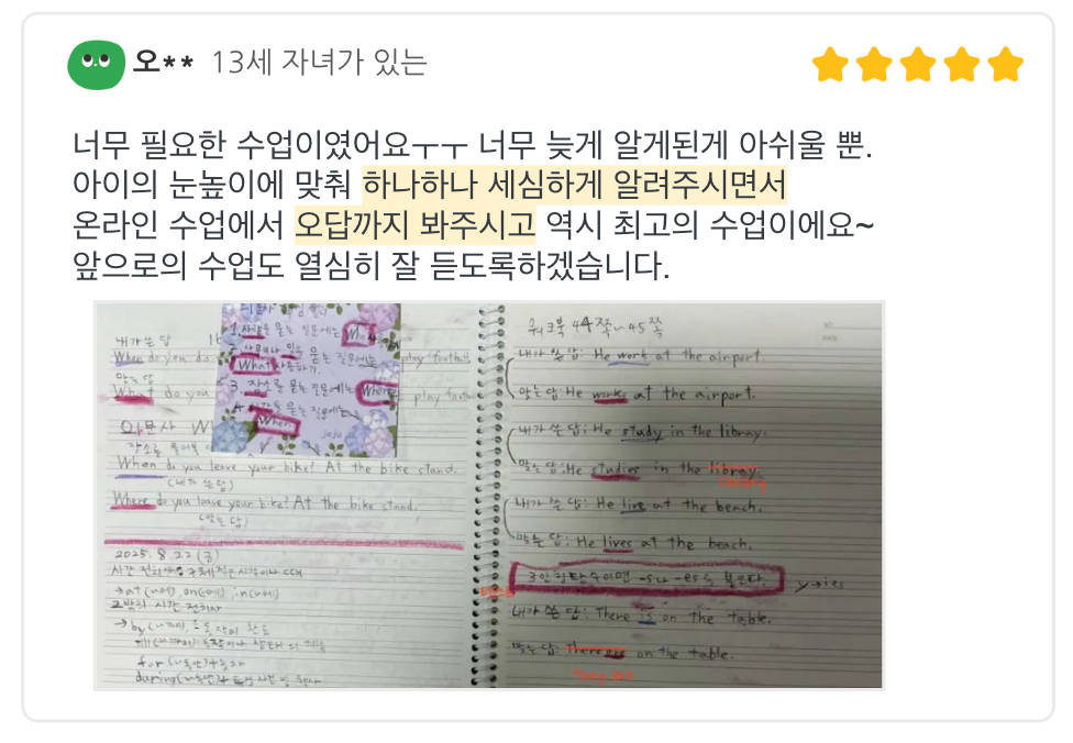 <누적 후기5/5✨ 학부모와 아이 모두 만족하는 수업!>