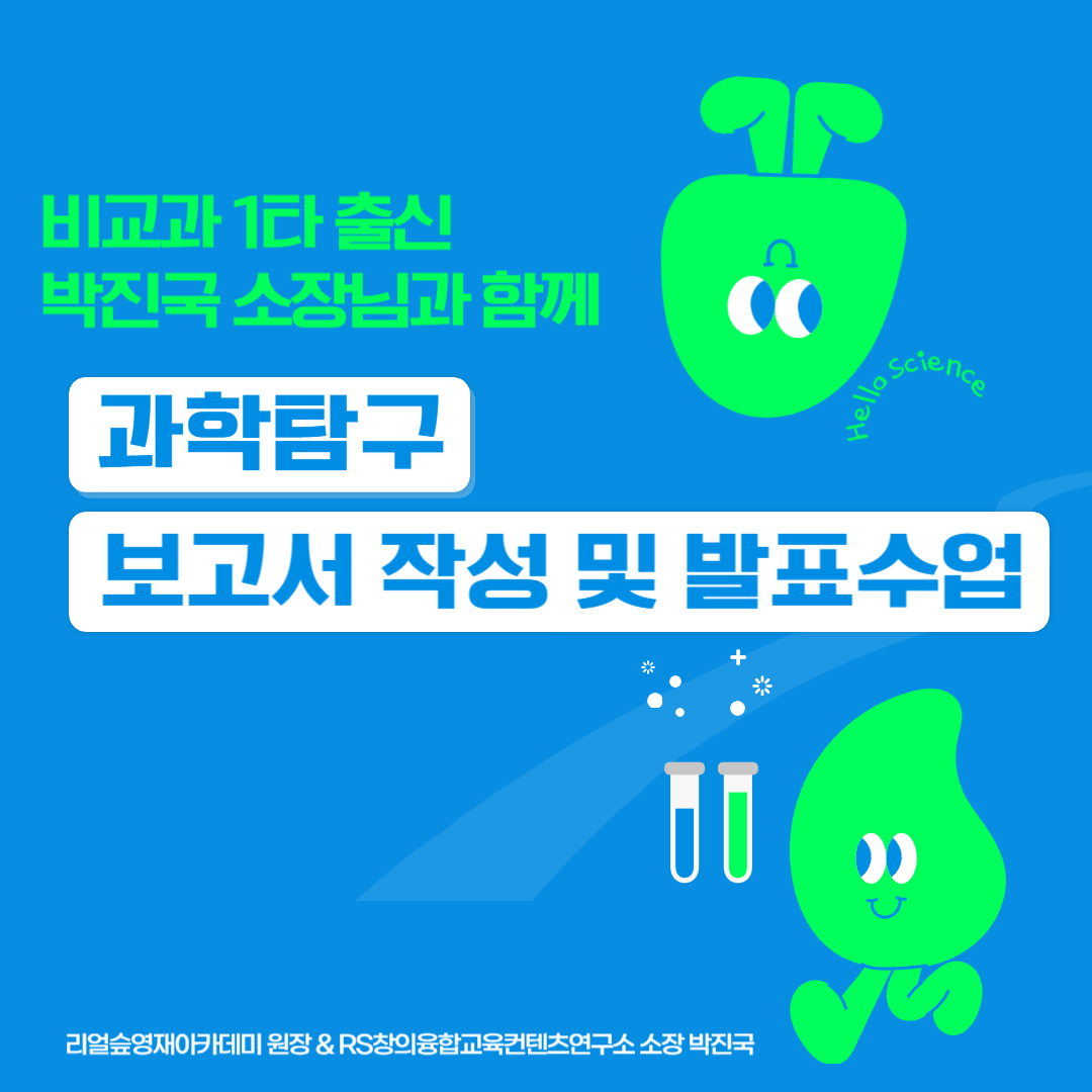특목고/영재원/과학고 준비생 및 과학연구 진로 지망생 강력 추천: 연구 설계부터 보고서 작성, 발표까지 직접 해보는 수업