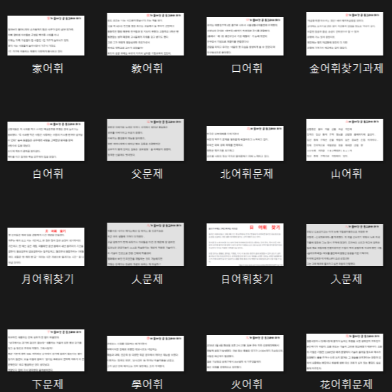 한자는 8-6급 수준의 한자로 구성되어 있습니다.