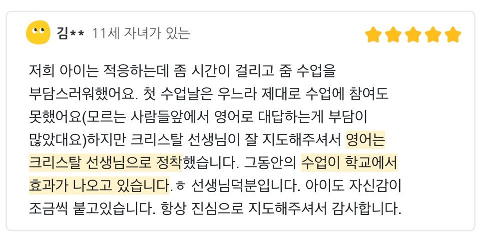 안녕하세요. 아이의 학습 과정을 정교하게 진단하고, 자기주도적으로 성장할 수 있는 기반을 설계하는 <파로에듀 크리스탈> 선생님 입니다. ☑️저의 수업은 11년간 다양한 문화권에서 쌓아온 티칭 경험을 바탕으로 구성되어 있으며, 단순히 수업을 듣고 과제를 수행하는 데서 끝나는 학습이 아니라 아이가 스스로 공부 시간을 구축하고, 배운 내용을 자신의 언어로 확장할 수 있도록 돕는 데에 초점을 두고 있습니다. ☑️이 모든 과정은 매주 1대1 면밀 분석과 개별 점검으로 진행되며, 아이의 변화와 학습 흐름은 학부모님께 투명하게 공유하여 가정에서도 아이의 성장을 함께 이해하고 지원하실 수 있도록 돕습니다. 아이의 배움이 흔들림 없는 토대 위에서, 자신만의 속도로 단단히 올라설 수 있도록, 따뜻하지만 전문적인 시선으로 함께하겠습니다. 감사합니다.