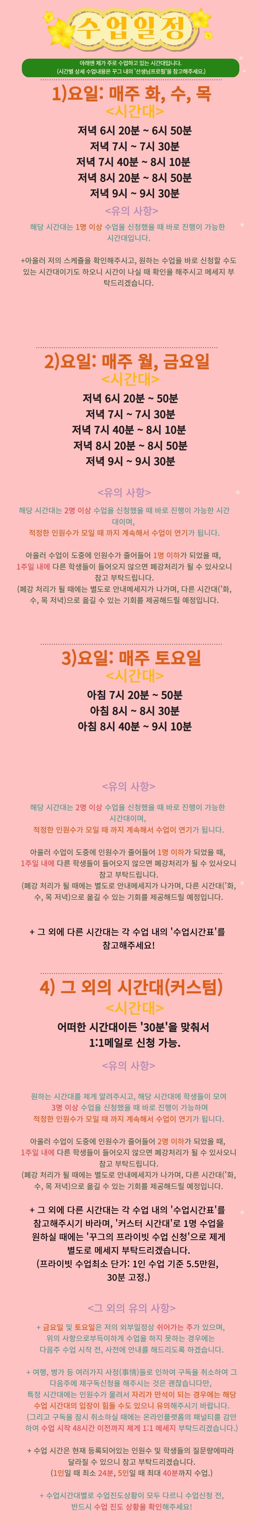 선생님의 사유로 인해 스케줄이 진행되지 않을 경우 알림톡을 통해 안내드려요.