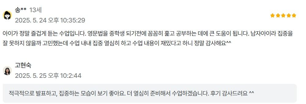 🌟 집중 관리가 필요한 학생 – 5명 정원으로 선생님과의 소통이 충분한 수업
