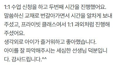 일대일 프라이빗 클래스 추천드립니다.