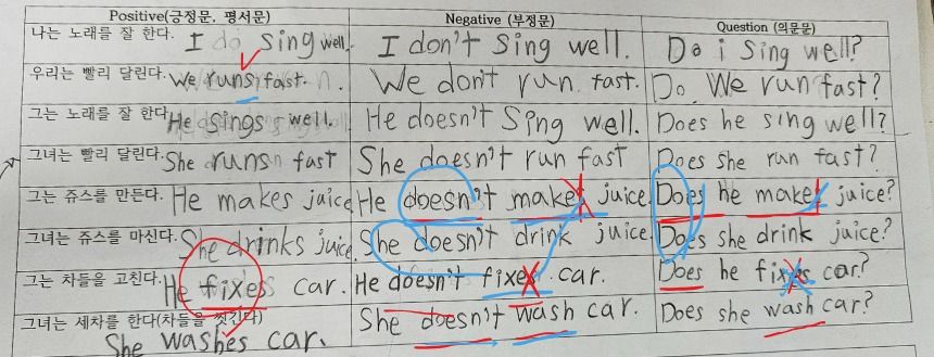이런 작은 실수들을 줄여주고 스피킹과 영작의 완성도를 높여가는 수업입니다.