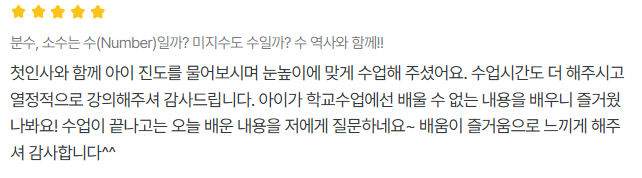 고려대(서울 캠퍼스) 졸업 강남3구 유명학원 학원장으로 15여 년간 근무 초중고등 학원용 교재 십수여 권 직접 제작 2016학년도 수능 입시에서 수능 만점자를 고1부터 지도함. 서울 소재 강남 3구에서 15년간 중등 의대, 최고반 및 고등 1등급반, 수능 1등급반을 지도하였습니다. 학원 원장으로 10년 동안 다양한 수준의 학생을 지도하면서 다양한 경험을 하였습니다. 특히 선생님은 학생의 생각을 읽고, 어떤 습관을 가지고 있는지 빨리 파악하여 그에 맞는 대응책과 방법을 제시하는 장점이 있습니다. 선생님의 다양한 수업 경험과 학생 관찰으로 수많은 학생이 수학에 자신감을 가지게 되었고 성적이 향상 되었습니다. 수학은, 복잡한 생각을 정리해주고 문제 해결의 도움이 되는 학문입니다. 즉, 실제로 우리에게 꼭 필요한 과목입니다. 그러나 요즘 학생들은 수학 개념과 이론을 (비판도 없이) 암기하고 (왜 그렇게 푸는지 모르는 채) 문제를 유형별로 반복적으로 풀어야 하는 과목이 수학이라고 생각합니다. 수학은 연산을 기초로 하여 학년이 올라갈수록 새로운 개념과 이론을 이미 배운 것과 연결하고 확장하여 학습해야 하지만, (수학이 연산이라는 생각이 강한) 학생은 '수학은 연산'이라는 생각으로 수학을 바라보니 한계가 생깁니다. 그래서 연산 실력이 좋을수록 중학 수학이 더 어렵게 느껴집니다. 이런 어려움은 고등 수학을 배울 때 또 경험하게 됩니다. 수학 개념과 이론은 학생이 주도적으로 이해하려는 습관이 필요한 부분이고 문제 해결은 문제 분석과 해결 전략이 필요한 부분입니다. "수학 개념의 연결과 확장" 그리고 "문제 분석 및 이해 그리고 문제해결전략"을 배워야 시간이 흐를수록 수학은 간단하고 쉽다는 것을 느낄 수 있을 것입니다. 선생님은 이것을 학생이 깨닫도록 도와줄 것입니다. 선생님의 수업 방식은 다소 특별합니다. 1. 개념과 이론이 '왜' 필요한지, '어떻게' 해서 이렇게 표현되었는지, 이미 배운 개념 중 "무엇"과 연결되는지 설명합니다. 2. 학생이 스스로 자기 생각을 말할 기회를 줍니다. 그래서 잘 된 생각과 수정해야 할 생각을 구분하여 줍니다. 3. 학생이 문제를 '어떻게' 풀었는지 학생의 생각을 이해합니다. 4. 문제를 분석하는 법, 이해하는 법, 해결의 시작점을 알려줍니다. 5. 문제를 유형화시켜 수업하지 않습니다. 그래서 풀이법도 유형화시켜 가르치지 않습니다. 6. 학생이 올바르게 (논리적으로) 풀었는지 수시로 확인하고, 학생의 생각을 말로 표현하도록 합니다(말로 표현하면 스스로 약점을 알게 됩니다).