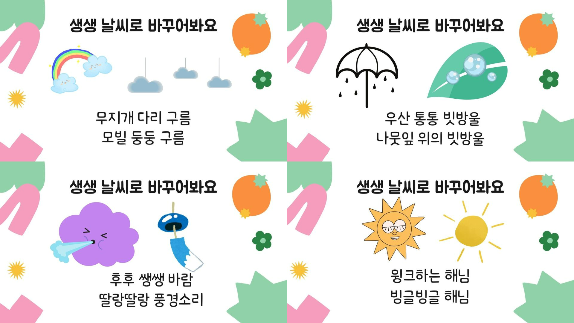 이 수업에서는 친근한 주제, 재미있는 그림과 영상으로 함께하는 퀴즈, 신나는 이야기 나누기 등 평소 일상과 연결된 활동으로 자연스럽게 한글을 익힐 수 있어요.