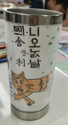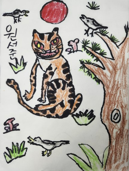아이들이 자신만의 민화 스타일로 호랑이와 까치를 그려보며