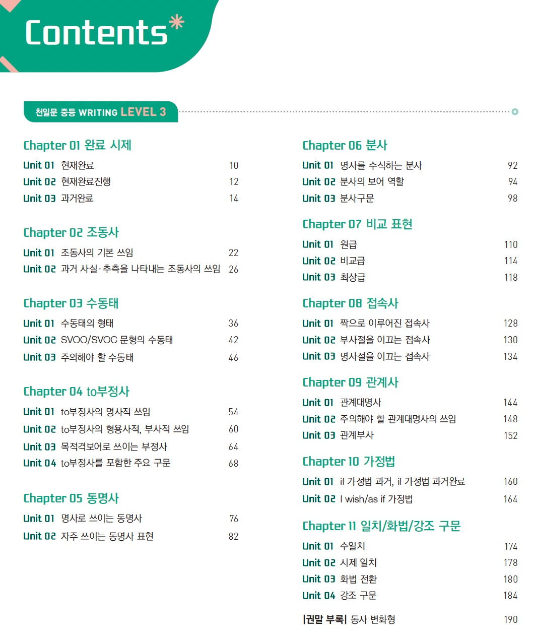 『천일문 중등 그래머 LEVEL 3』에서는 가정법, 관계사, 수동태, 비교급 및 최상급 등