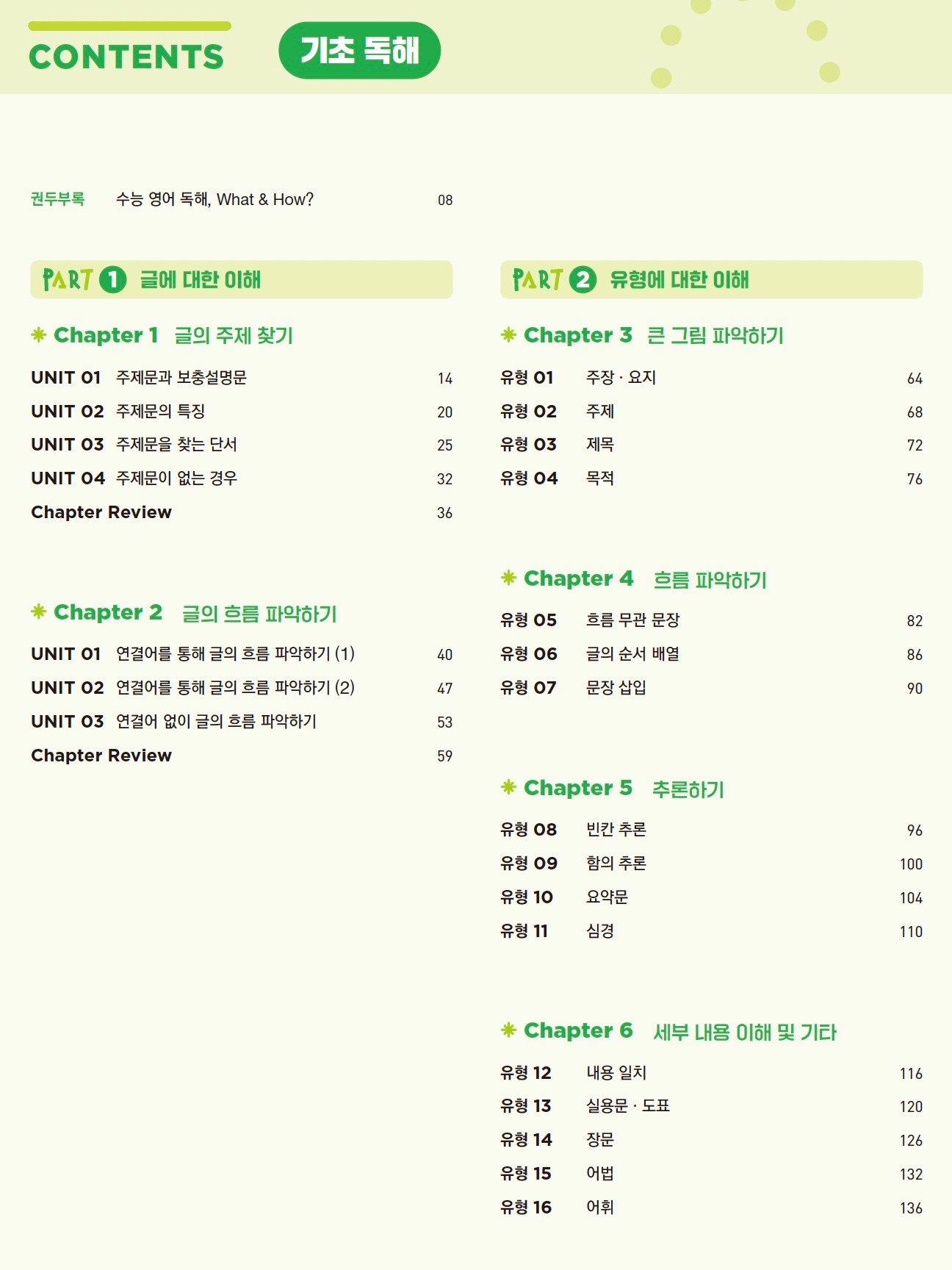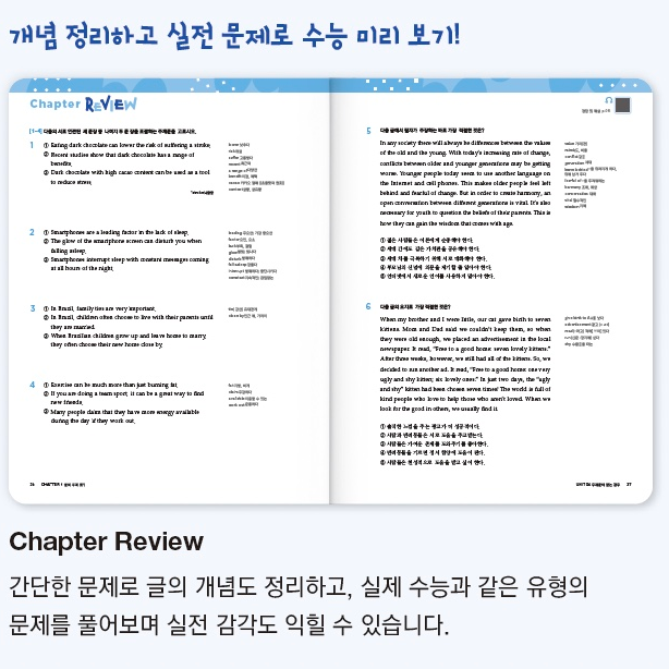 매 단원 마지막에는 Chapter Review와 실제 수능 기출 문제로