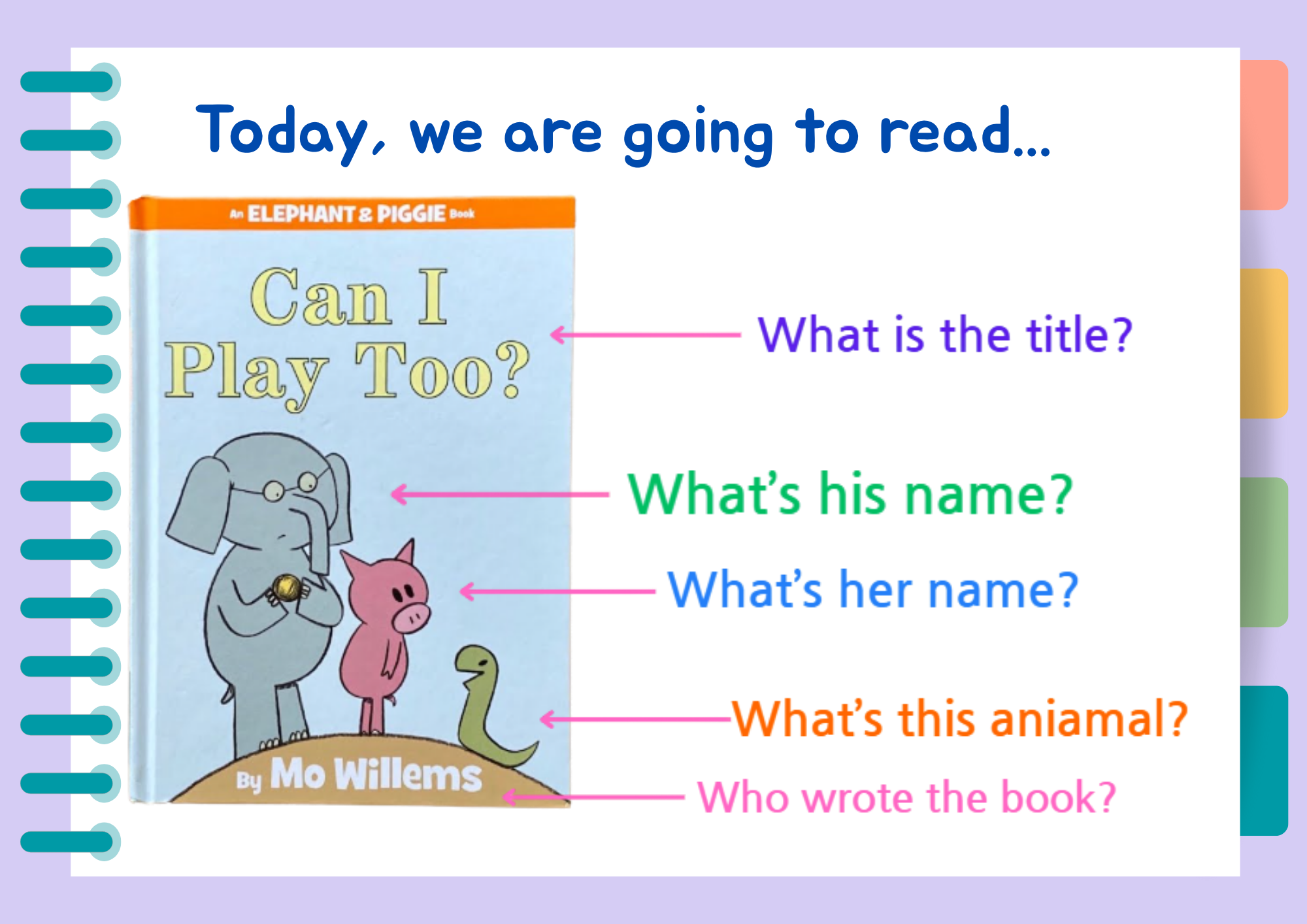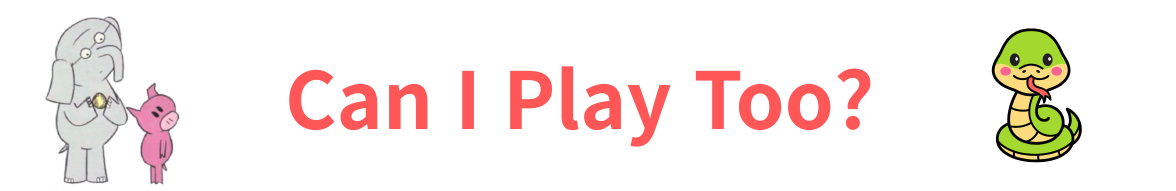 Elephant & Piggie 시리즈의 "Can I Play Too?" 를 함께 읽고, 놀이 아이디어를 영어로 말하며 패턴을 익히고 스피킹 자신감을 키웁니다.