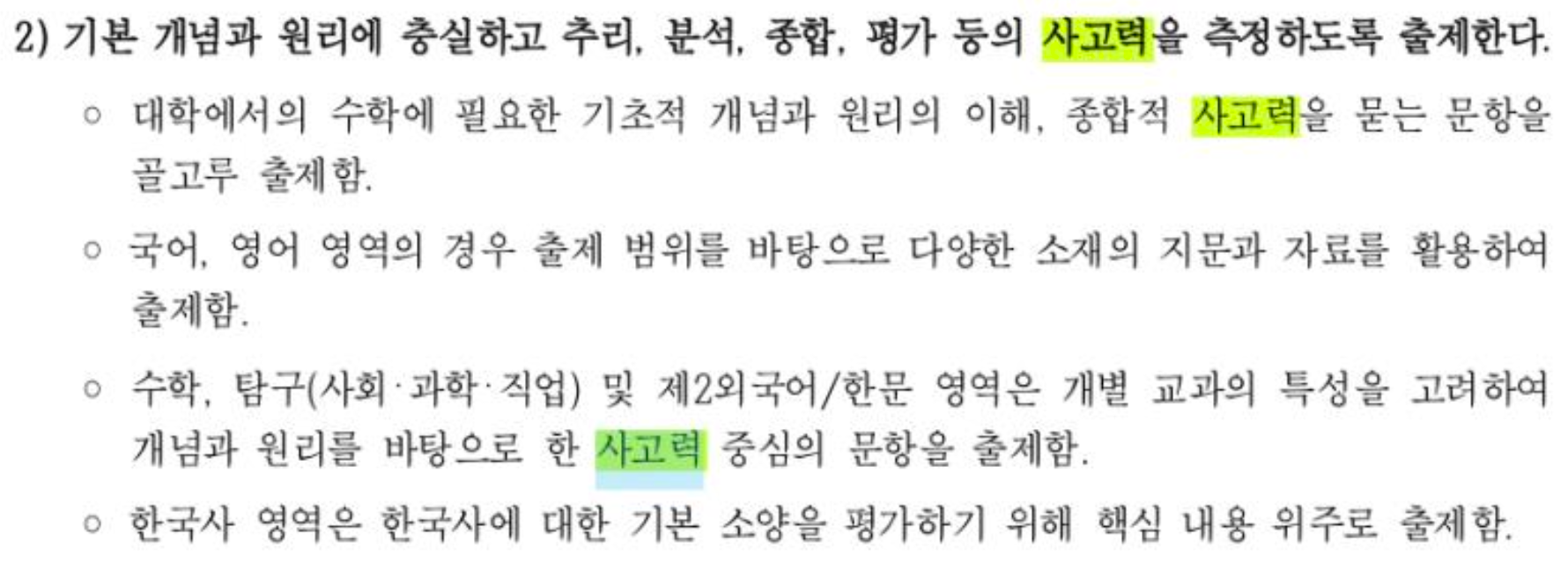아래는 대입에서 가장 중요한 시험인 수능을 출제하는 평가원의 출제 원칙입니다.