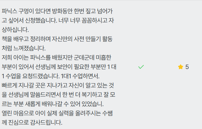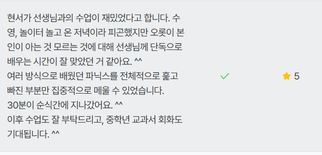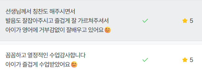 ✔️ 영어 티칭뿐만 아니라 아이들의 정서적 특징을 잘 이해합니다.