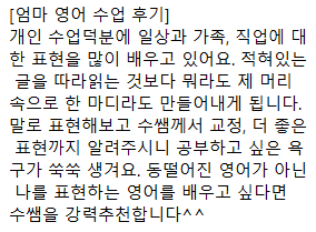 엄마표 영어 → 엄마의 영어회화 공부를 위한 개인 수업도 가능합니다.