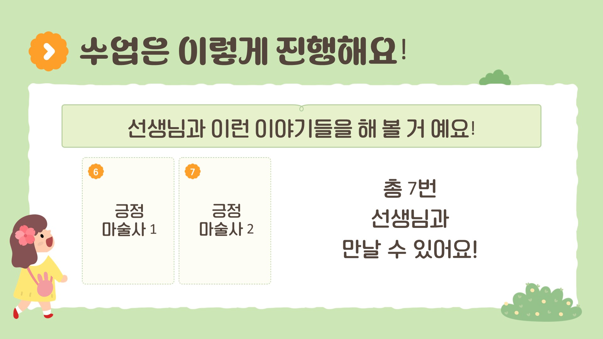 🕒 수업 구성 (총 7회기, 회기당 40분) * 최대 1:4