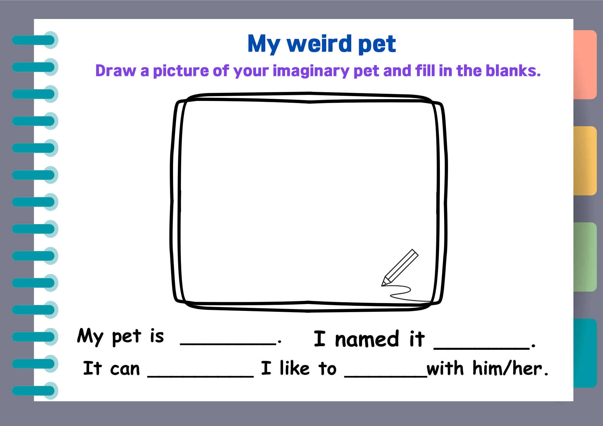 창의적 확장: 나만의 상상 속 애완동물을 말과 그림으로 표현하며 영어로 자기 생각을 표현하는 자신감을 길러요.
