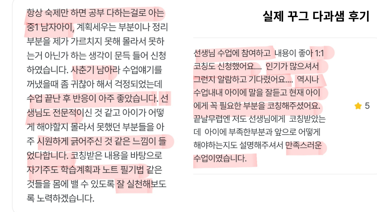 아이 스스로 공부 계획을 세우는 모습이 처음이에요! – 중1 학부모